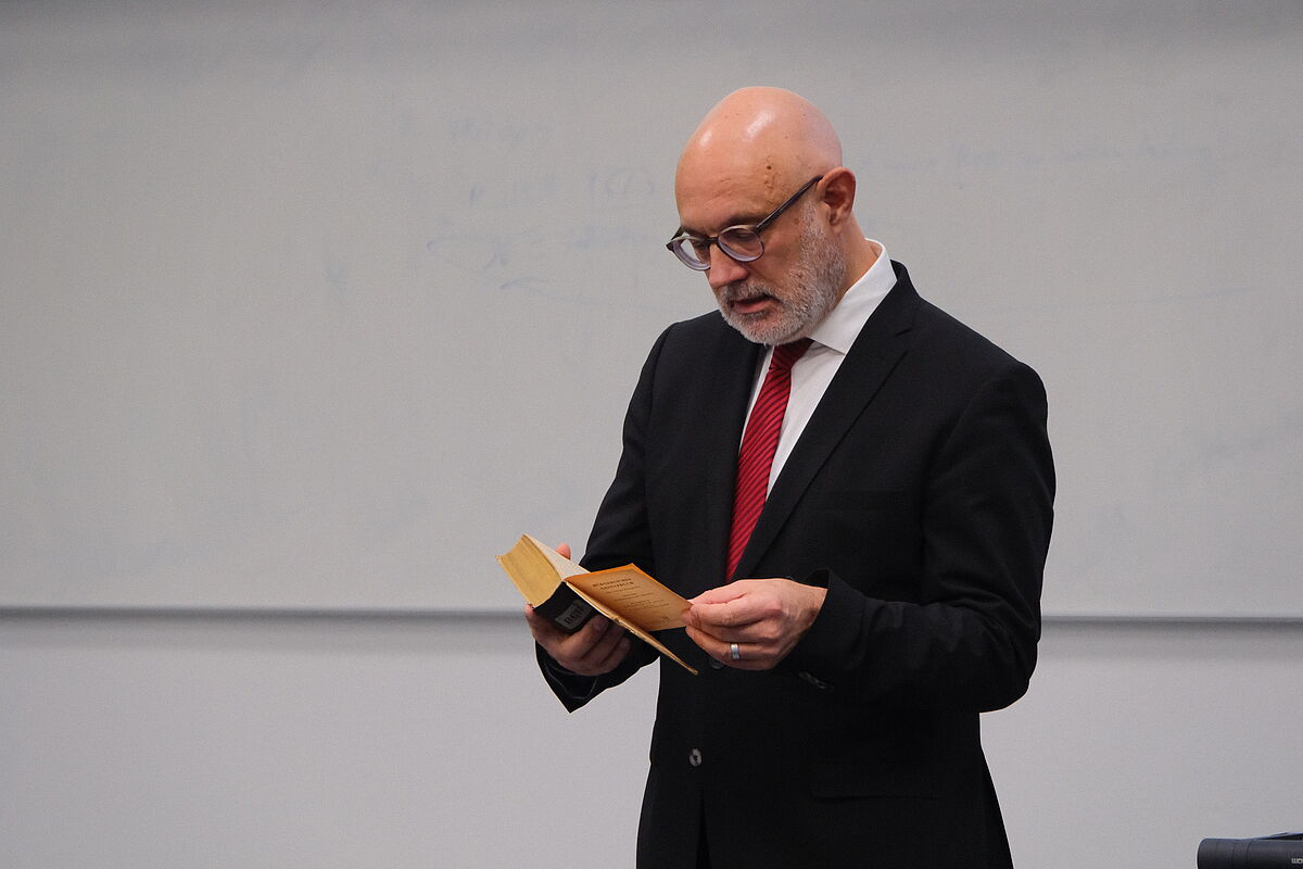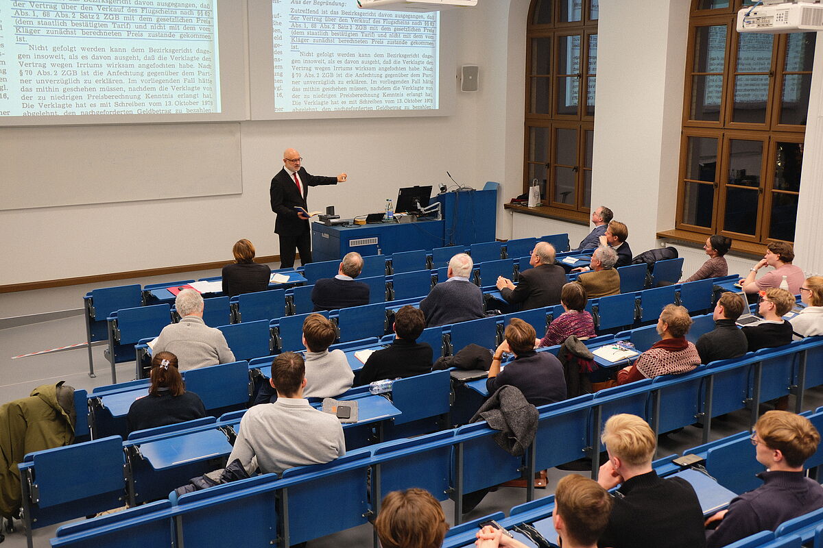 Unter dem Generalthema „(Un-) Recht in Unrechtssystemen“ füllt die Rechts- und Staatswissenschaftliche Fakultät die Auseinandersetzung mit der Einflussnahme diktatorischer bzw. autoritativer Regime auf bestehende Rechtssysteme mit Leben. Die dazugehörige Vortragsreihe im Wintersemester 25/26 beschäftigt sich mit dem „Recht im Sozialismus“. Den Anfang machte Prof. Dr. Adrian Schmidt-Recla von der Universität Jena.